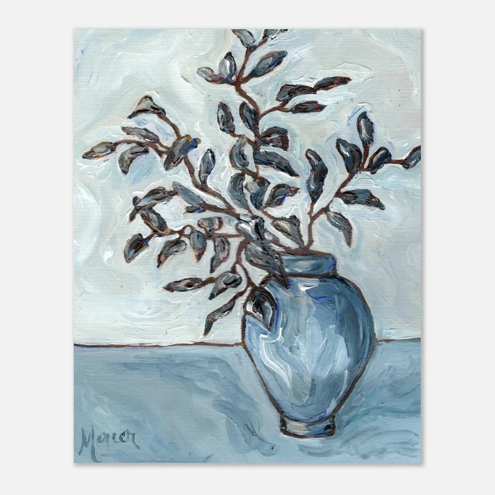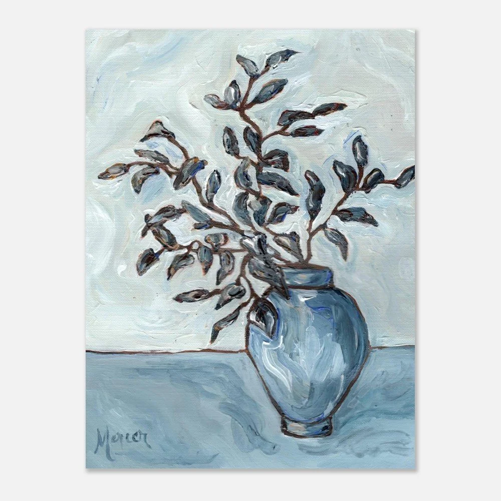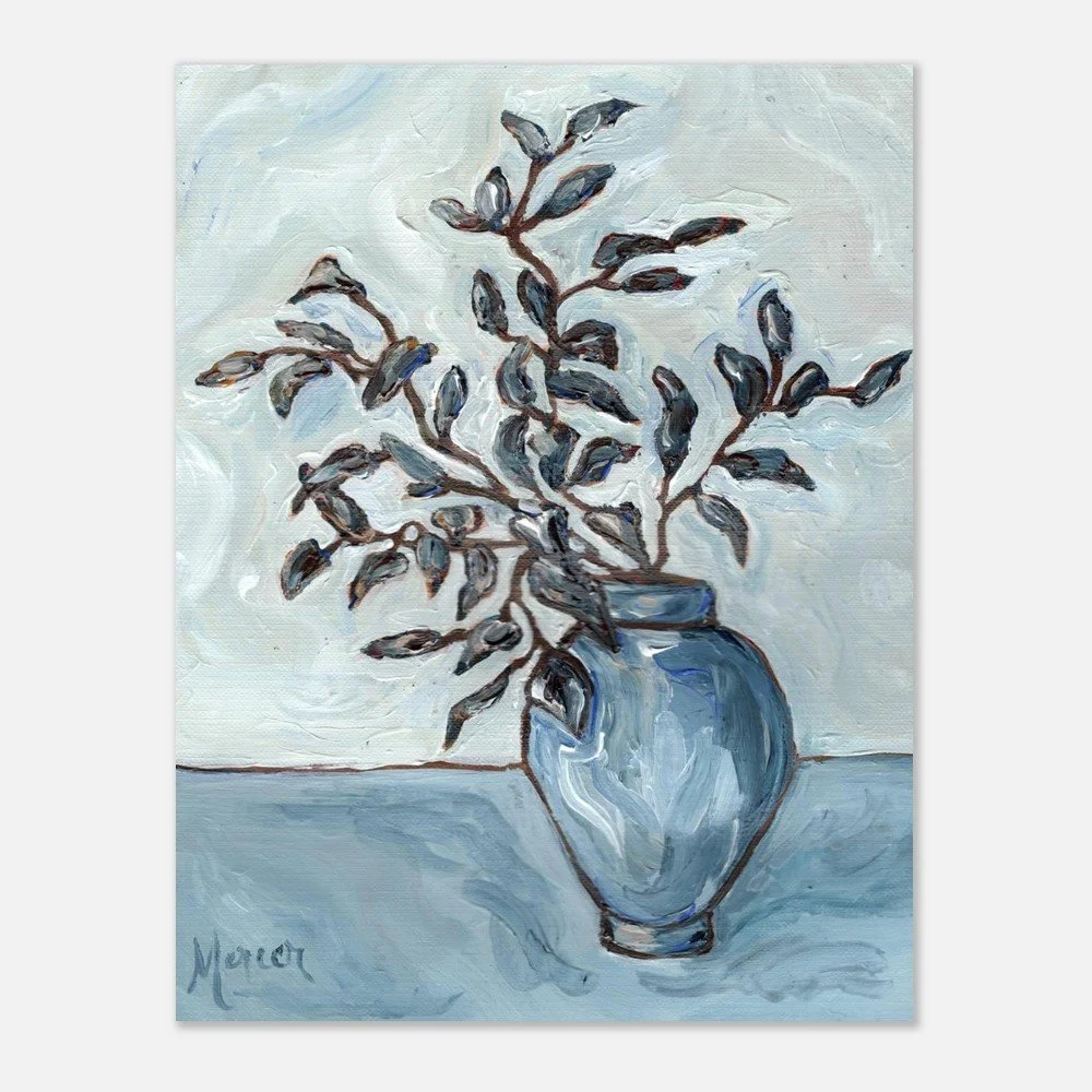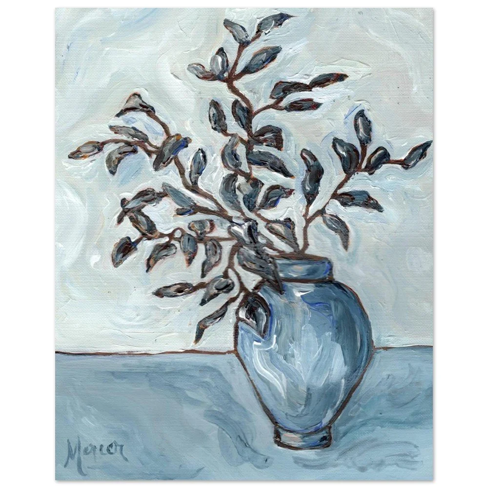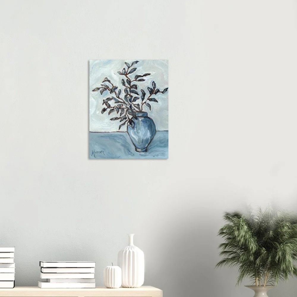 As I was running one grey, cozy autumn day in 2025, a swirl of falling leaves caught my eye—and became the heartbeat of this painting. “Autumn Blues” is painted on textured linen paper in my loose, impressionist style. It’s full of movement and soft color shifts. There’s something about those in-between days—the quiet, moody ones—that remind me how life moves too. Things change, fall away, begin again. This piece carries that feeling: of change, of calm, of finding beauty in the grey. This print is a minimal and chic way to elevate your space. The giclée art print stands out from any angle as the matte museum-quality paper diffuses the light.